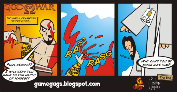 *God created the world in 6 days, rested a bit, and then spent a good few years creating Kratos. *There is no theory of evolution; just a list of animals Kratos lets live *And God said......... "Run, it's Kratos. " -Exodus 17-12